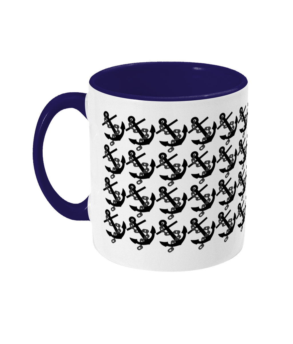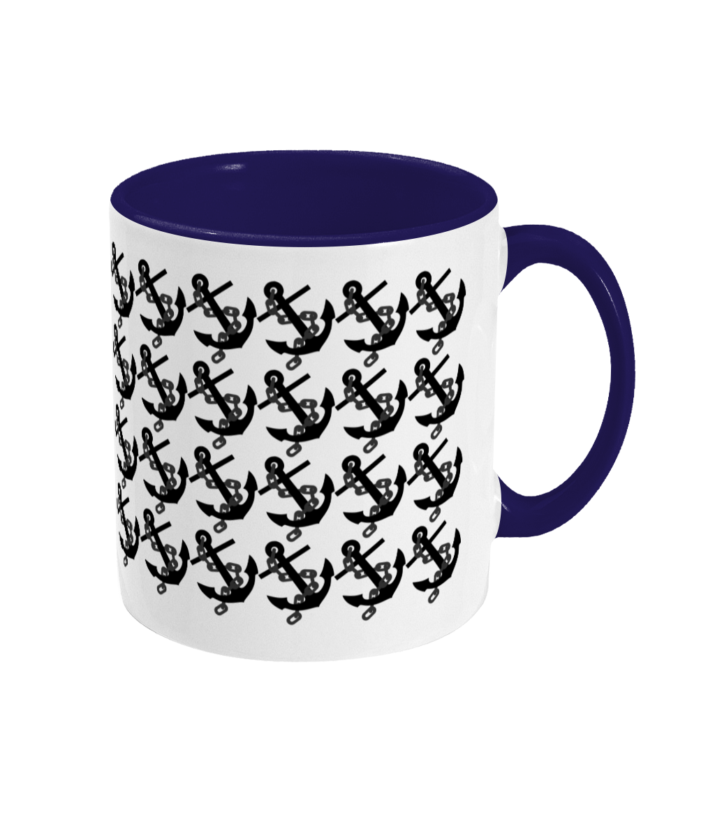 Anchors Two Toned Mug – 11oz glossy white ceramic mug with coloured handle and inner. Dishwasher & Microwave safe. Available in 2 colours.