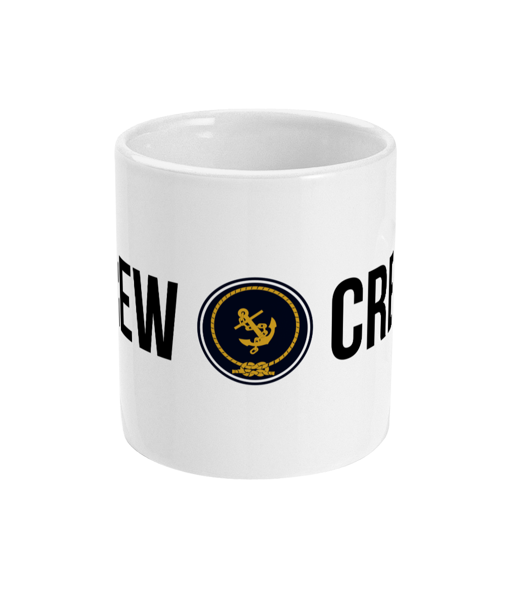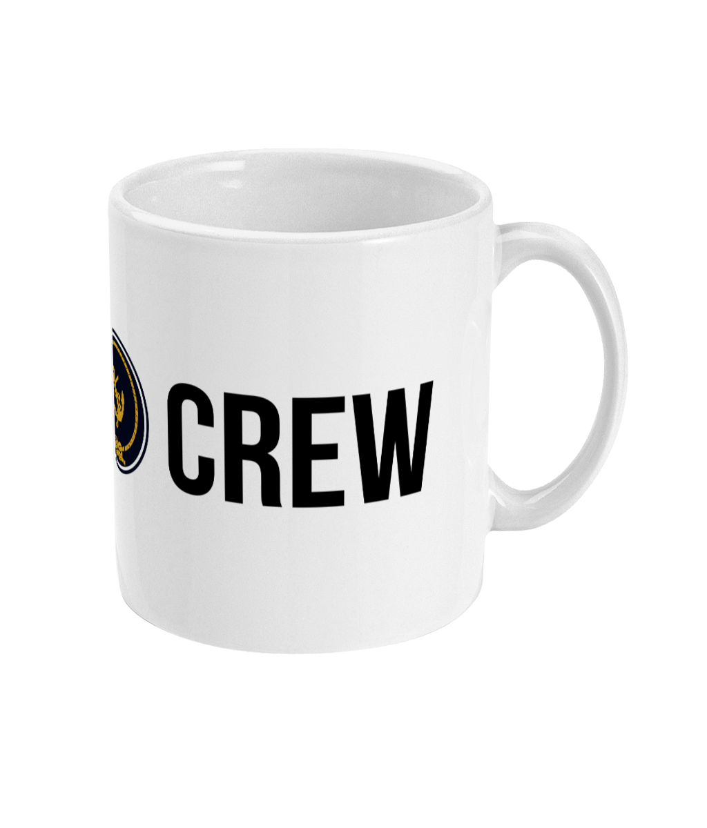 Crew & Anchor Logo 11oz glossy white ceramic mug. Dishwasher & Microwave safe.