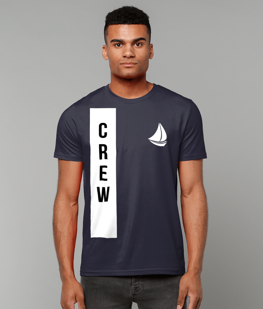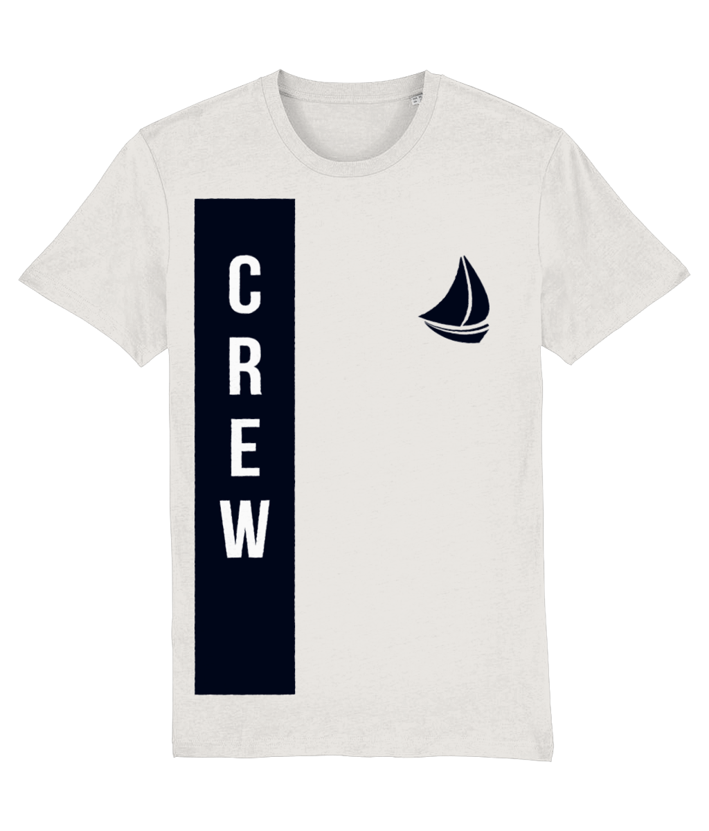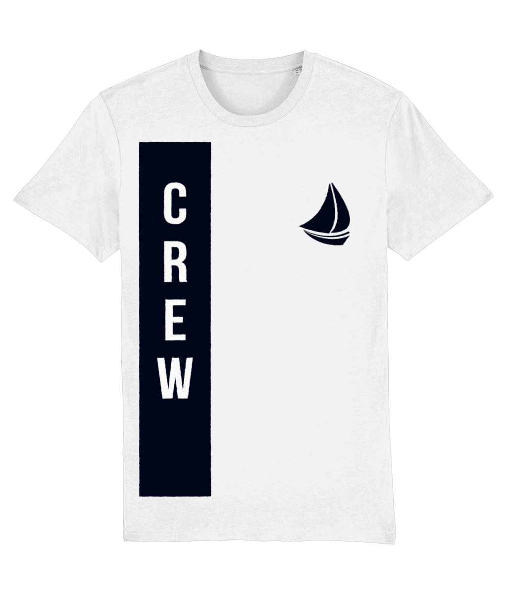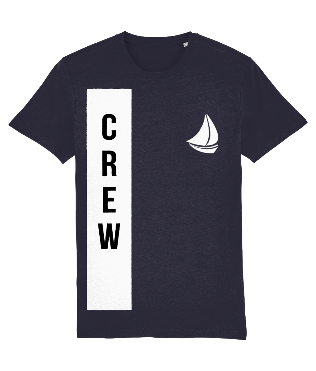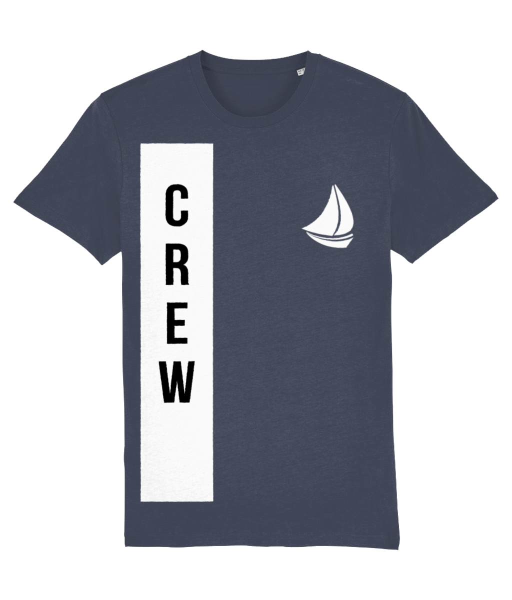 “CREW” with Sailboat Logo T-Shirt – 100% organic, available in 5 colours from XX-Small to 3XL