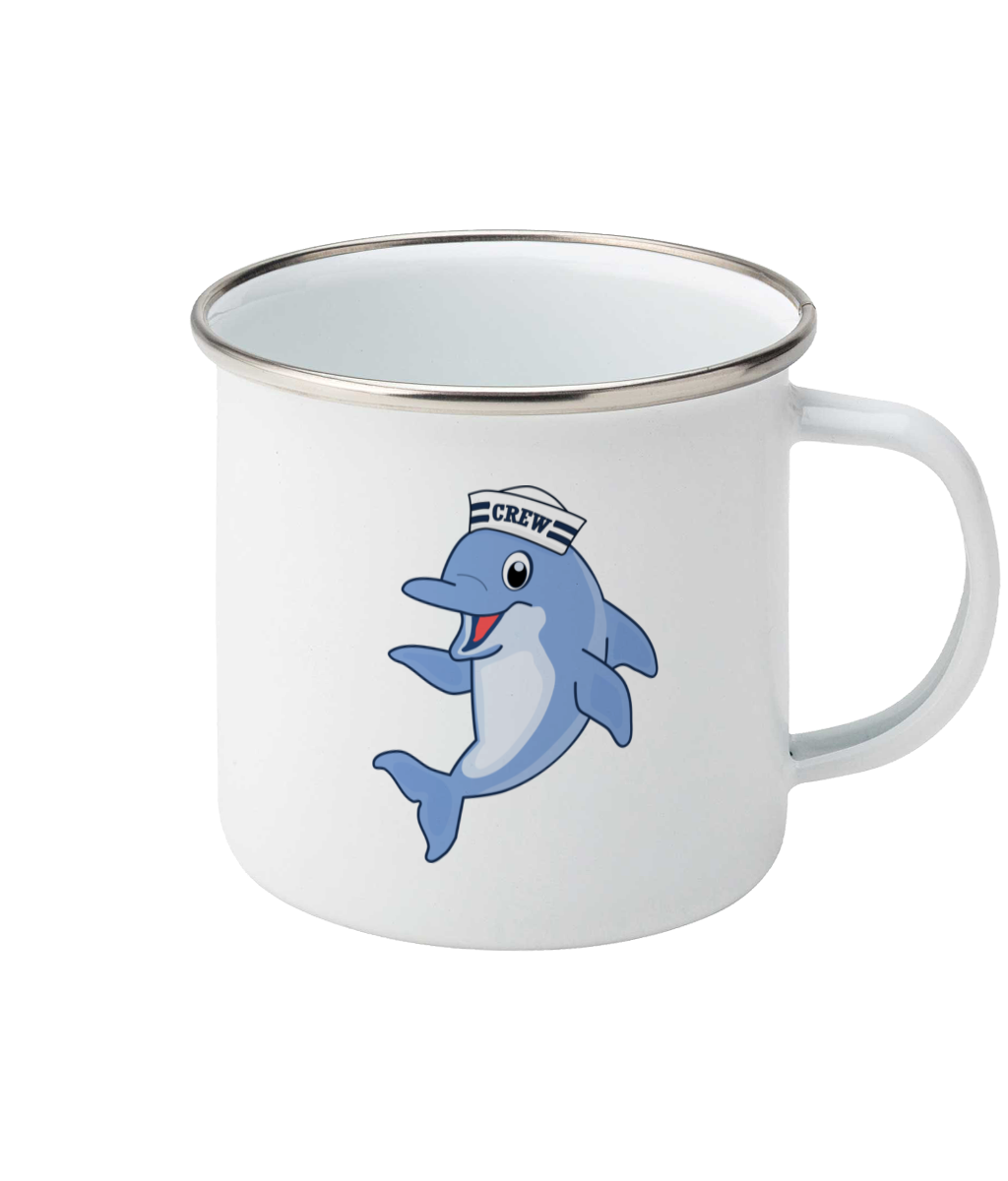 Dolphin Crew Enamel Mug – 11oz enamel mug, hand enamelled for a unique finish. Not suitable for dishwasher or microwave.