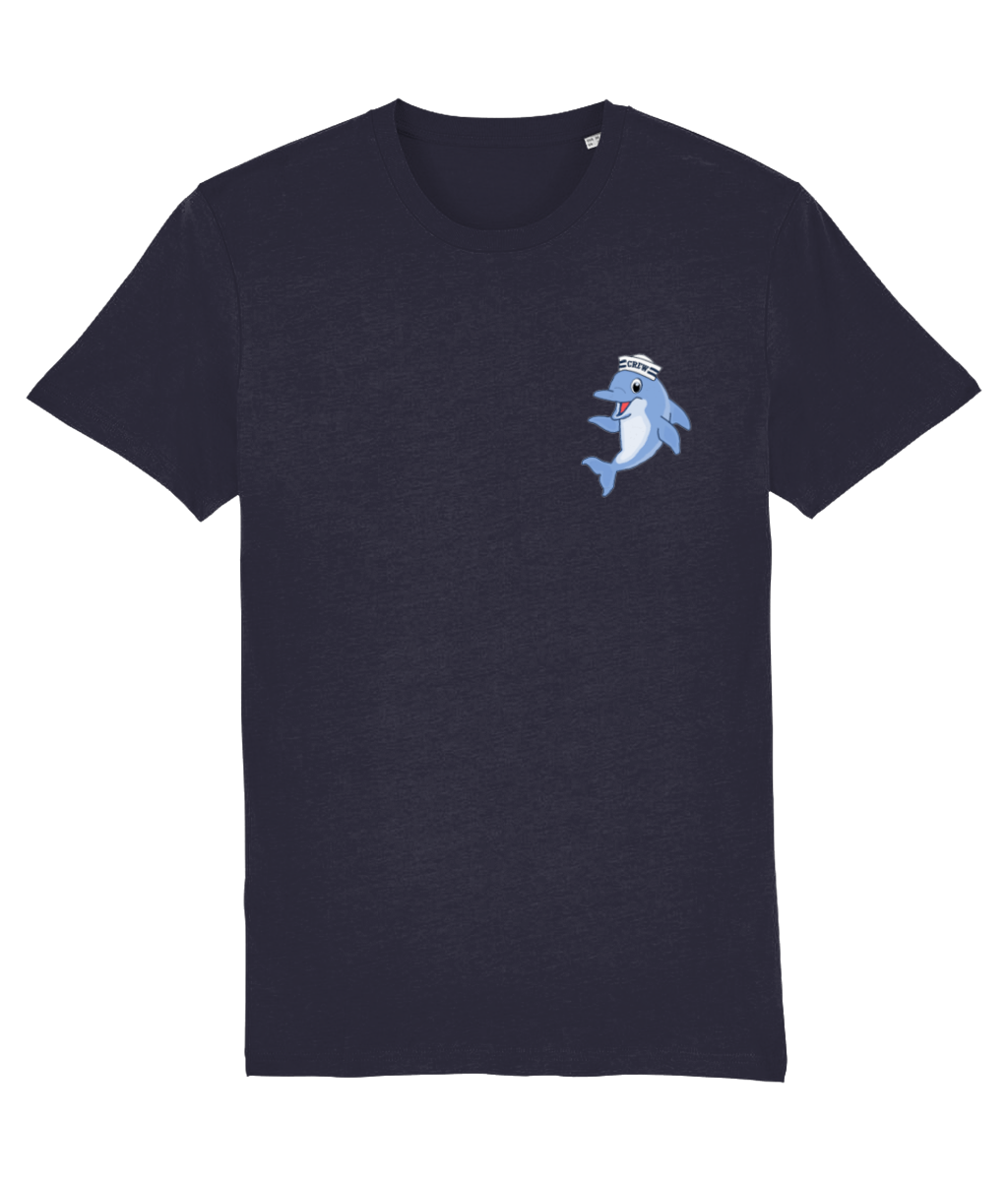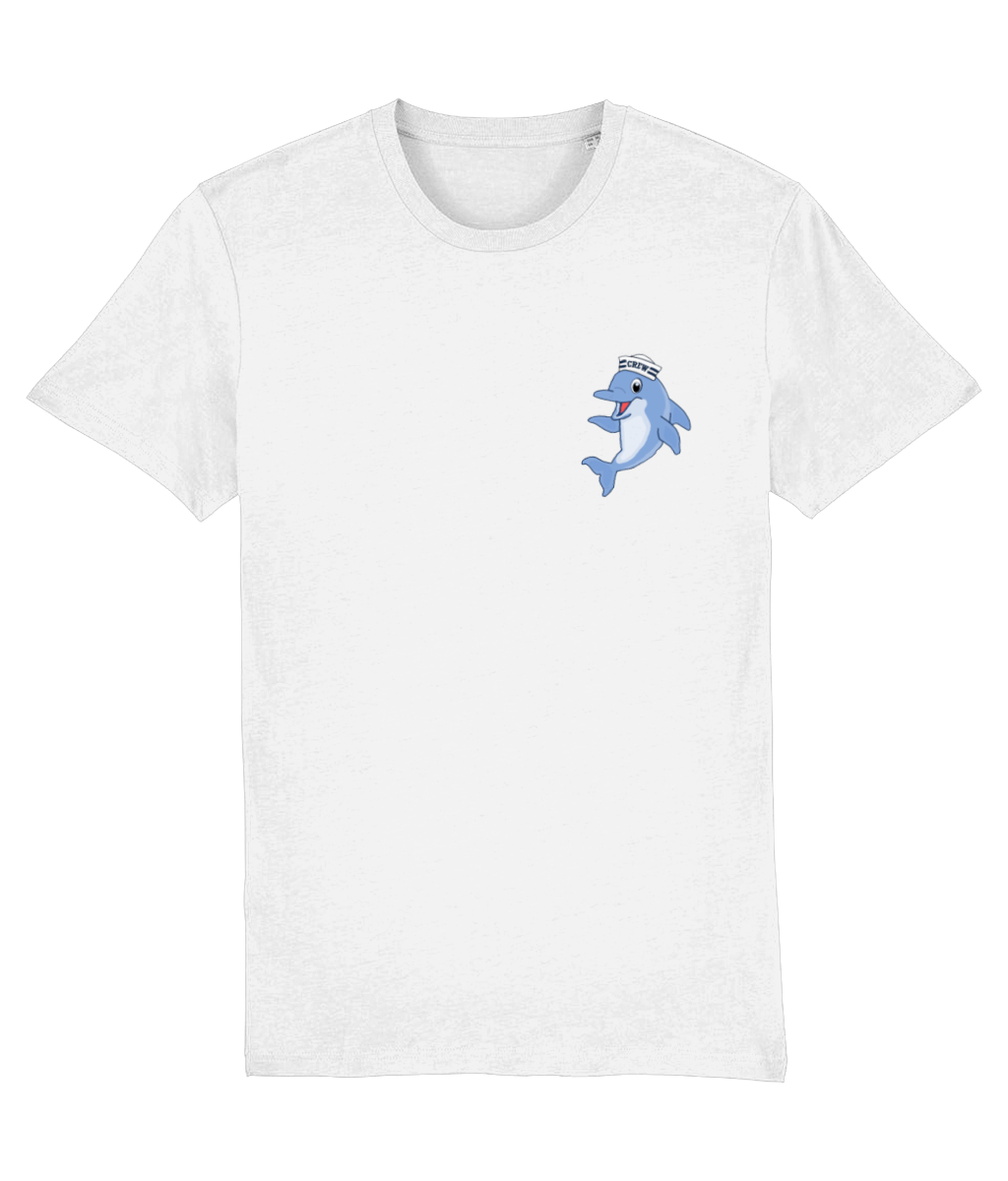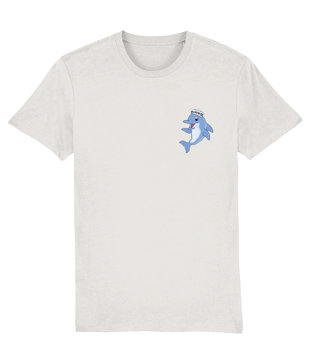 Dolphin in Crew Hat Logo T-Shirt – 100% organic, available in 4 colours from XX-Small to 3XL