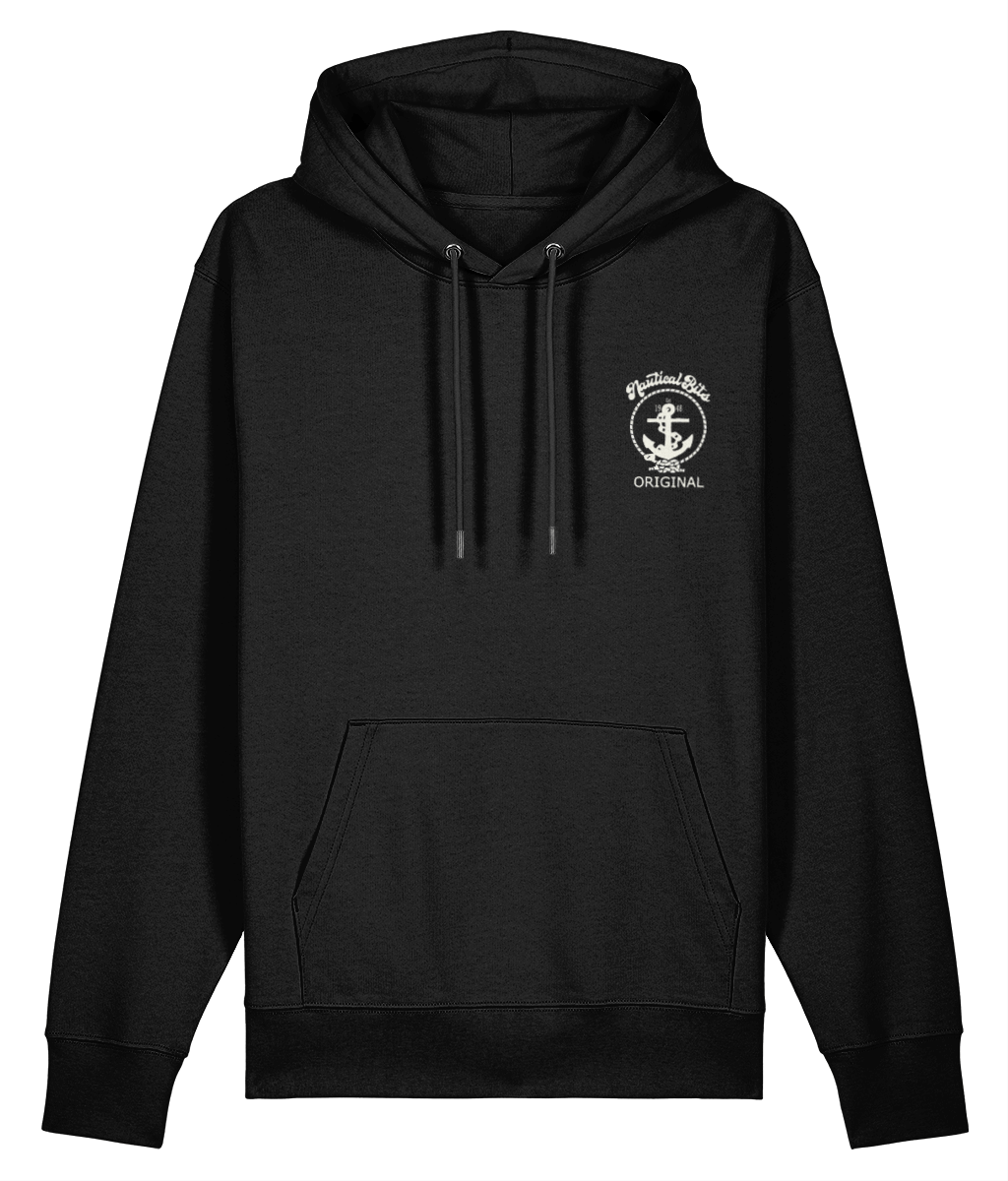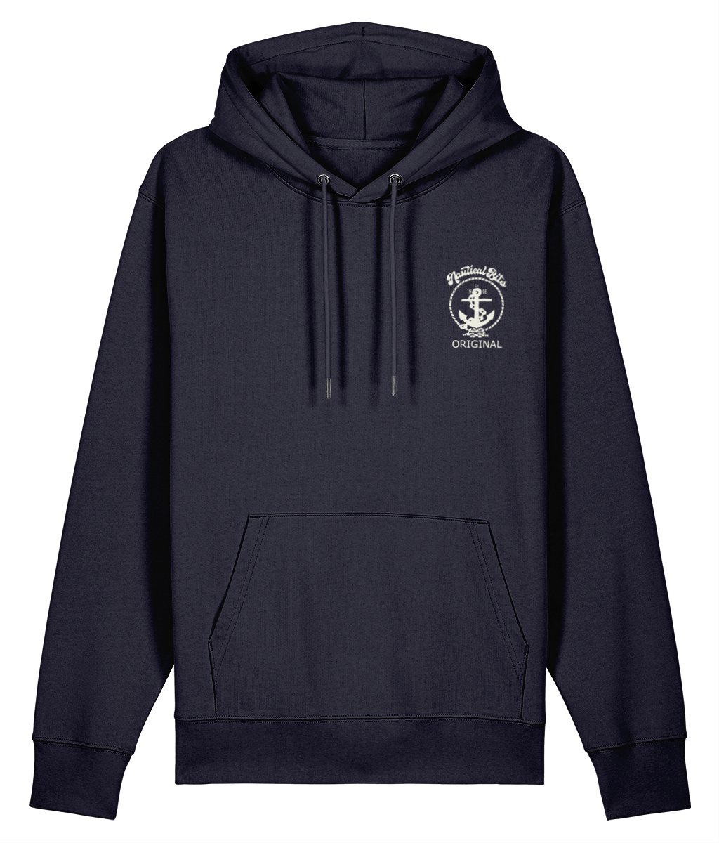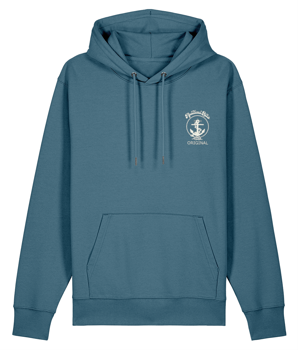 Nautical Bits Original Logo Cruiser Hoodie – 100% organic ringspun cotton, available in 7 colours from XXS to 3XL