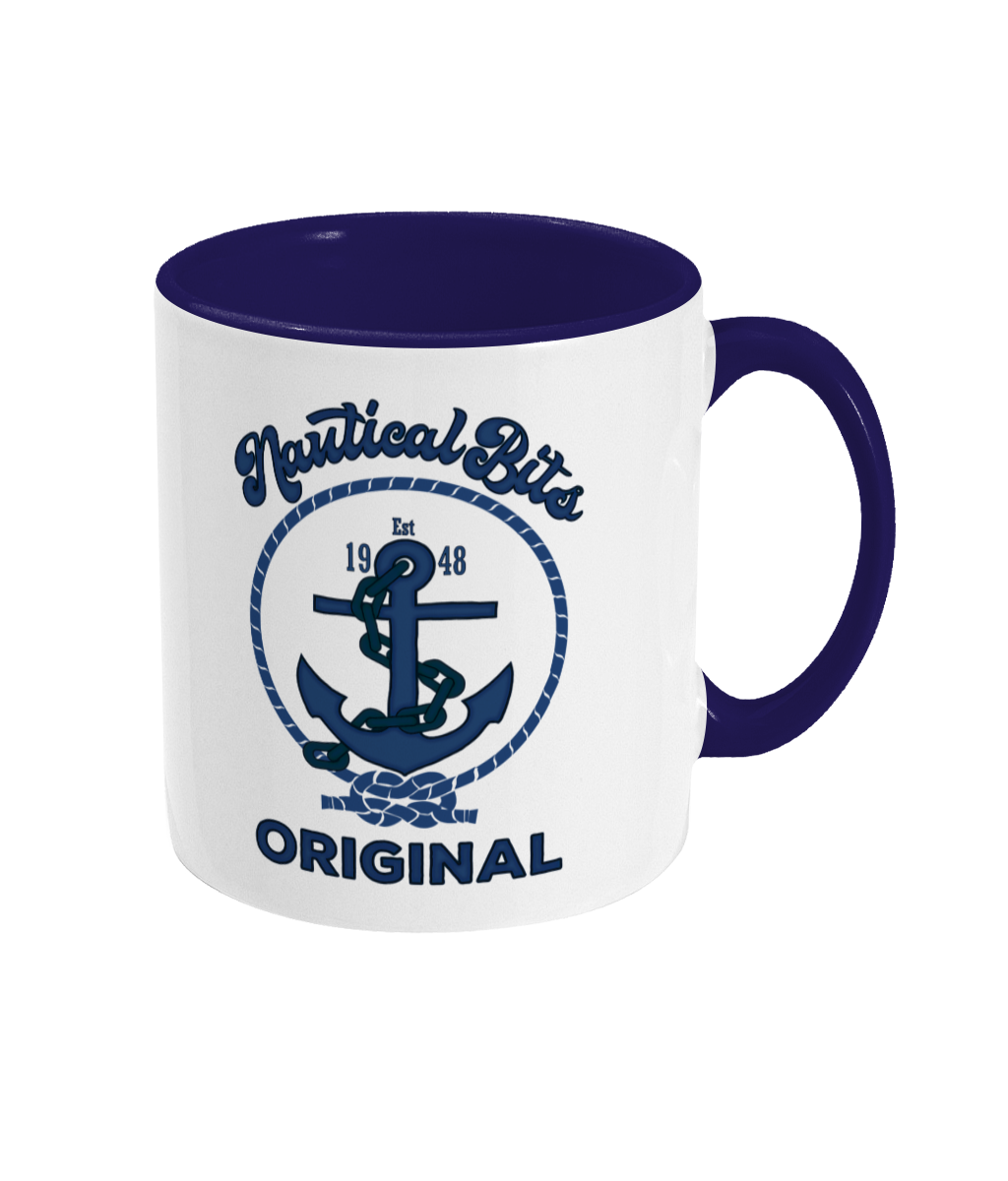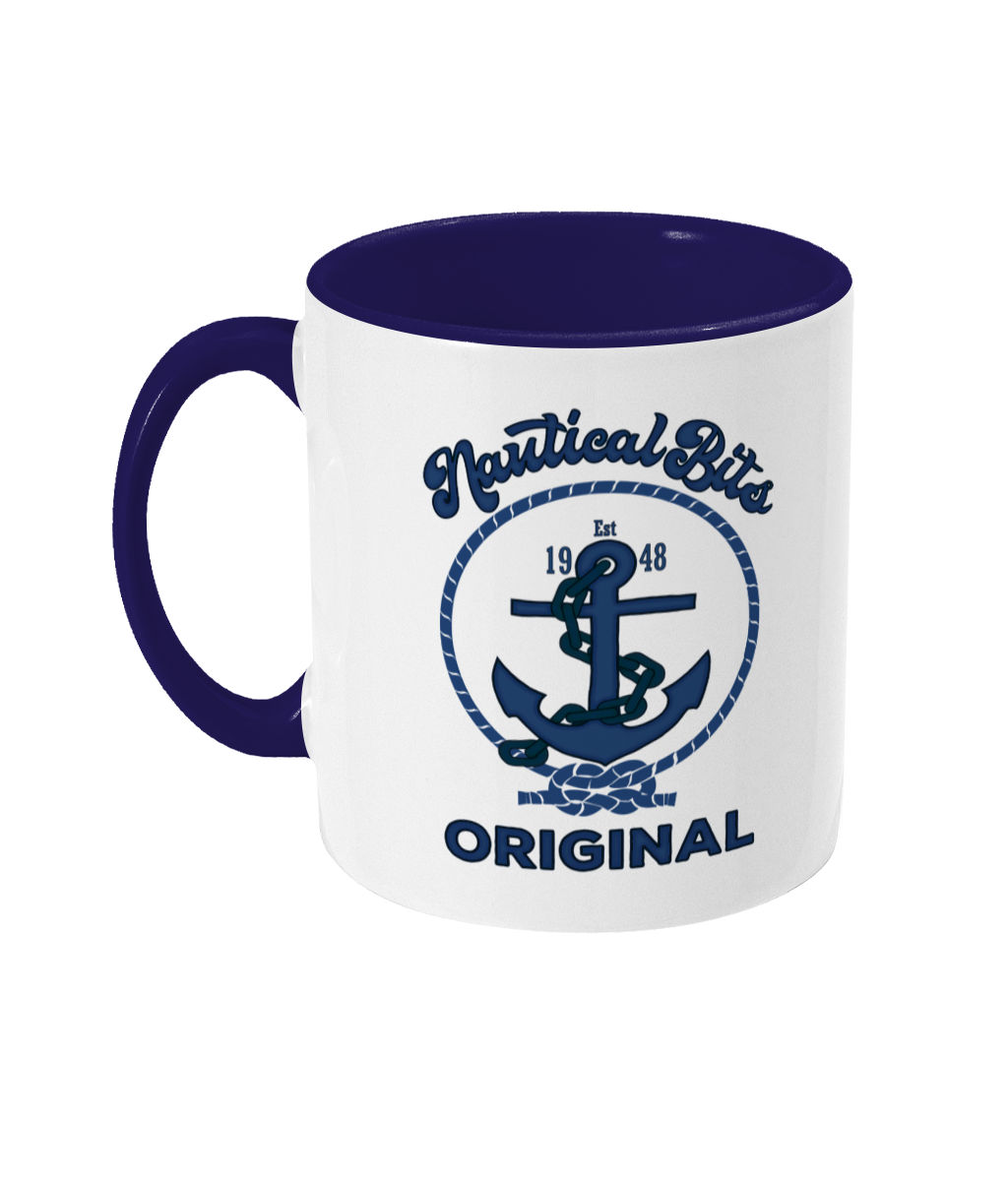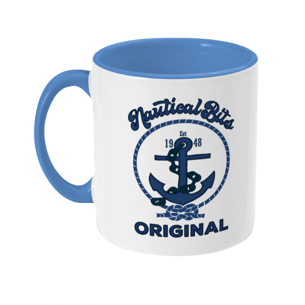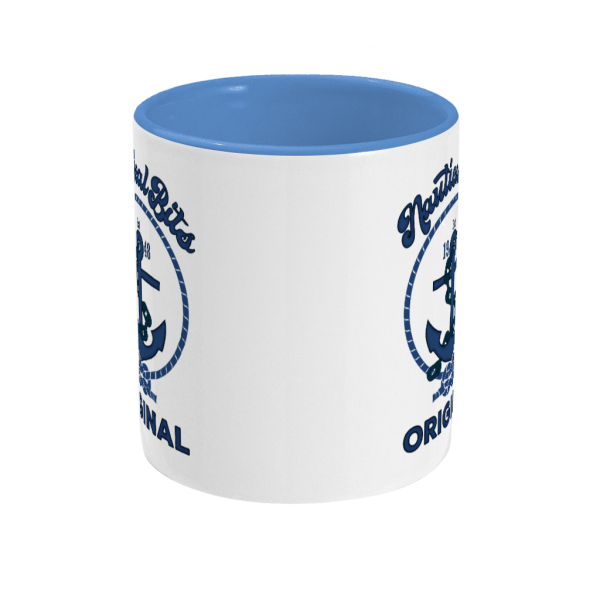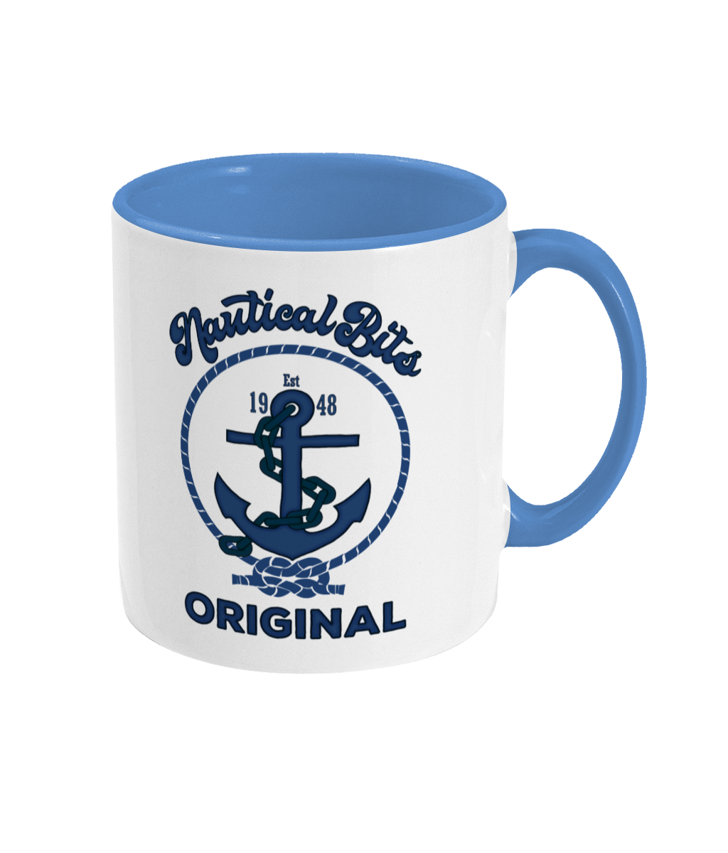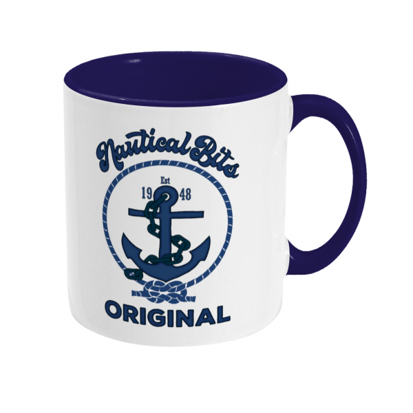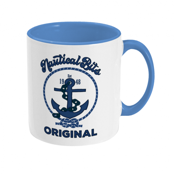 Nautical Bits Original Two Toned Mug – 11oz glossy white ceramic mug with coloured handle and inner. Dishwasher & Microwave safe. Available in 2 colours.
