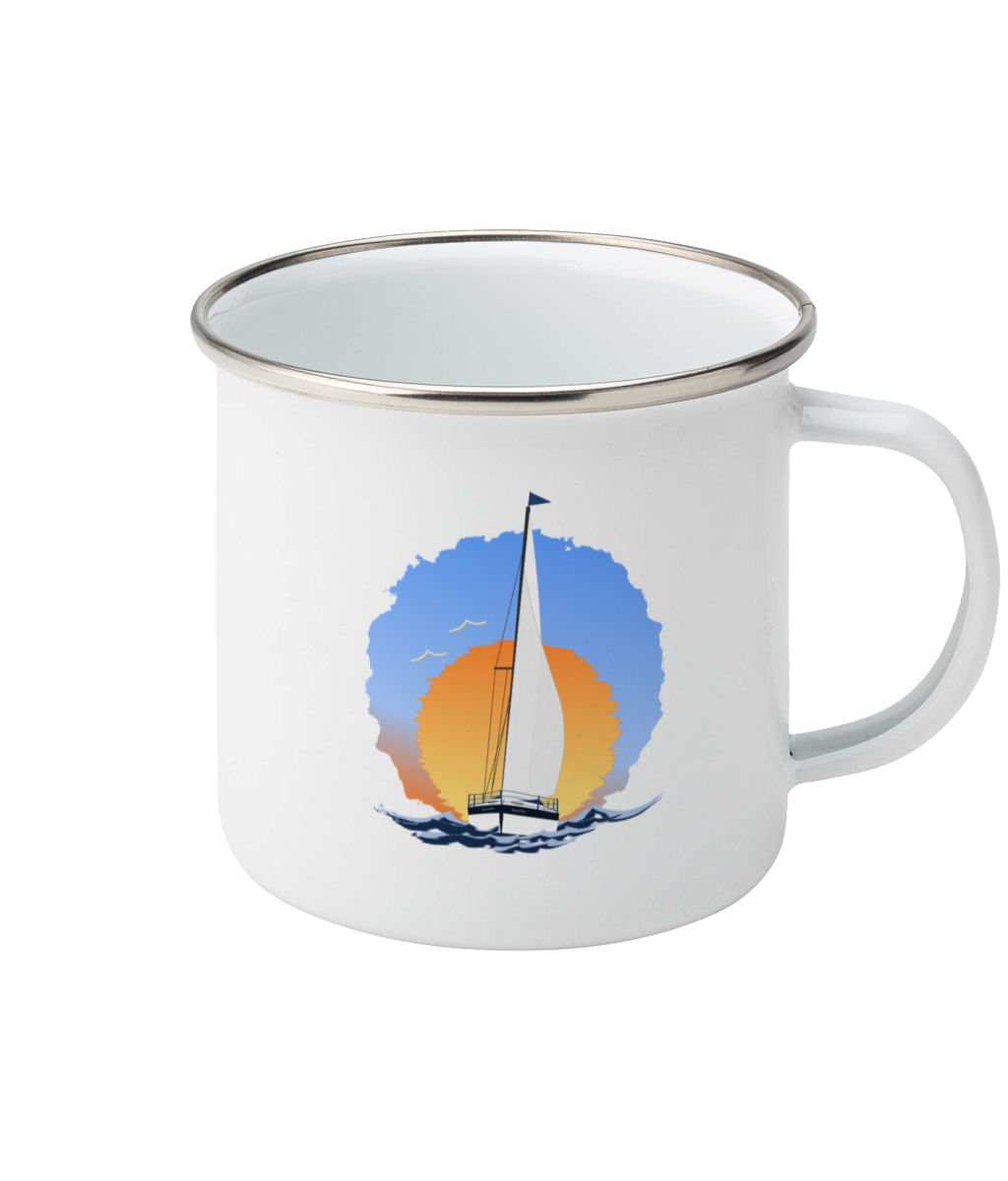 Sailing Yacht at Sunset Enamel Mug – 11oz enamel mug, hand enamelled for a unique finish. Not suitable for dishwasher or microwave.
