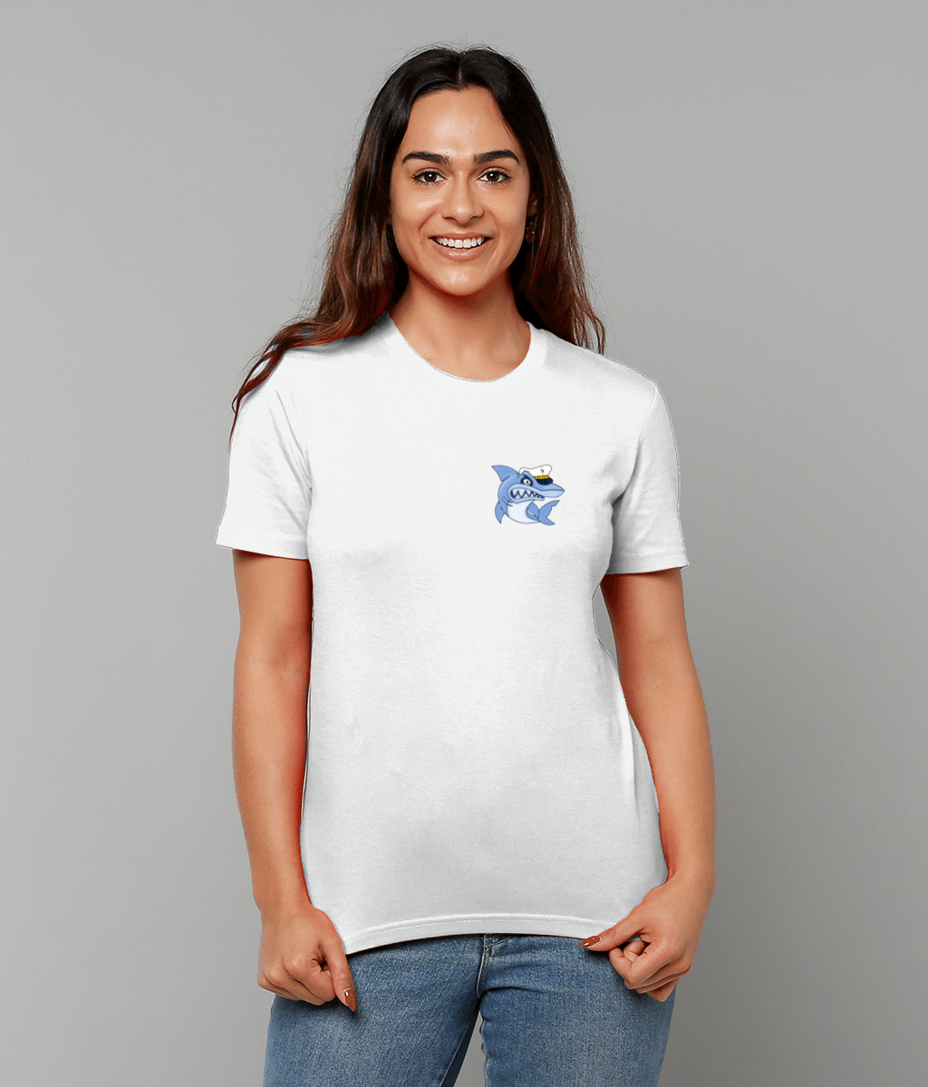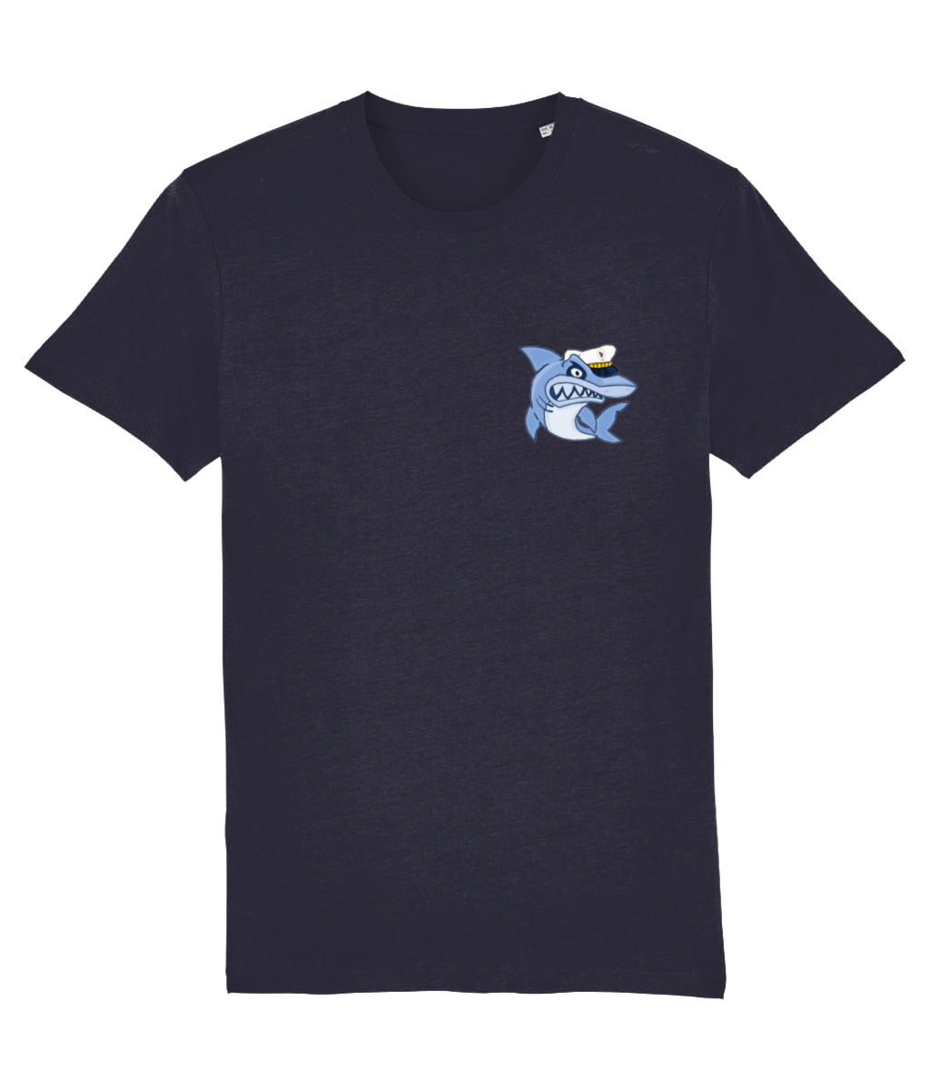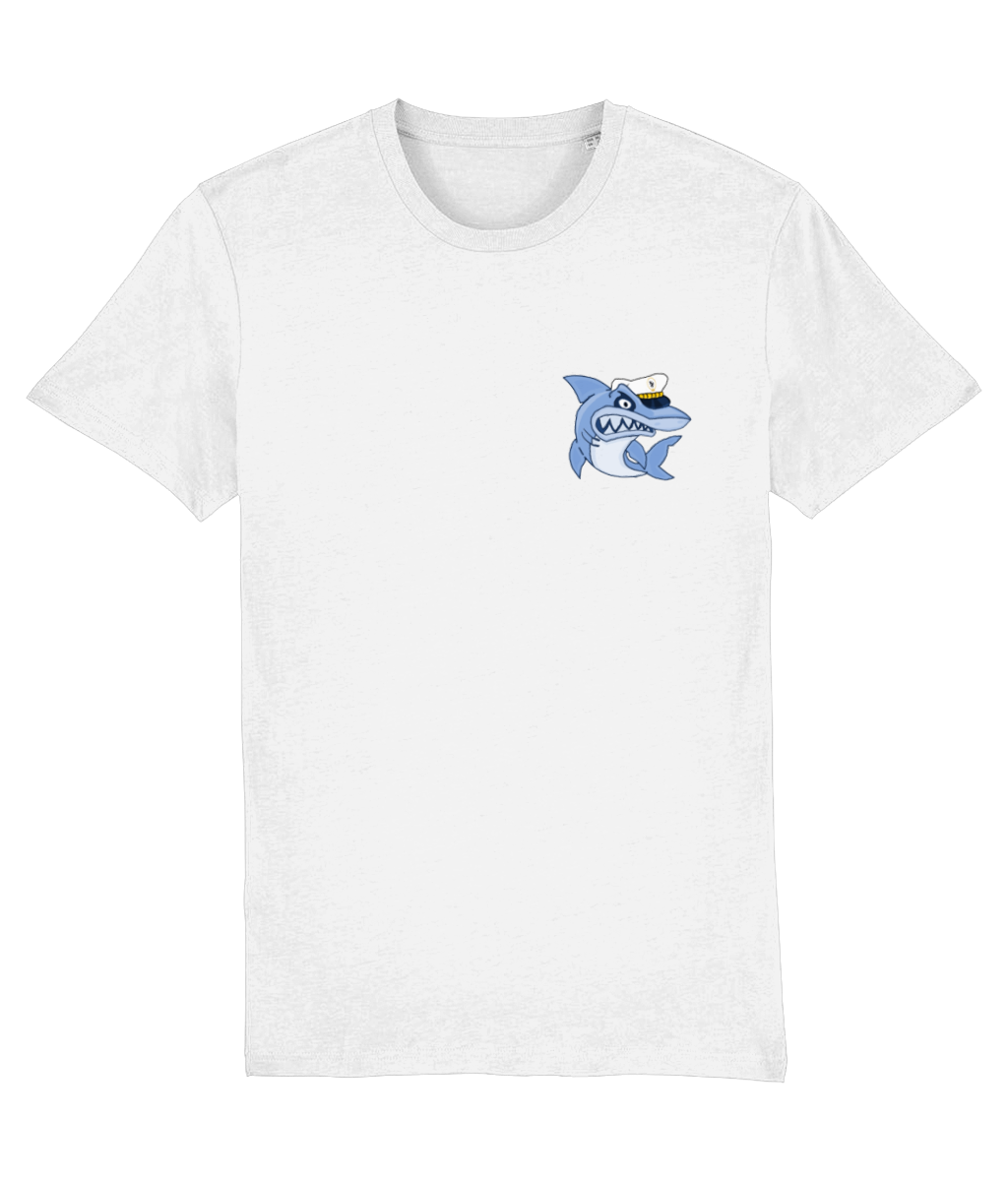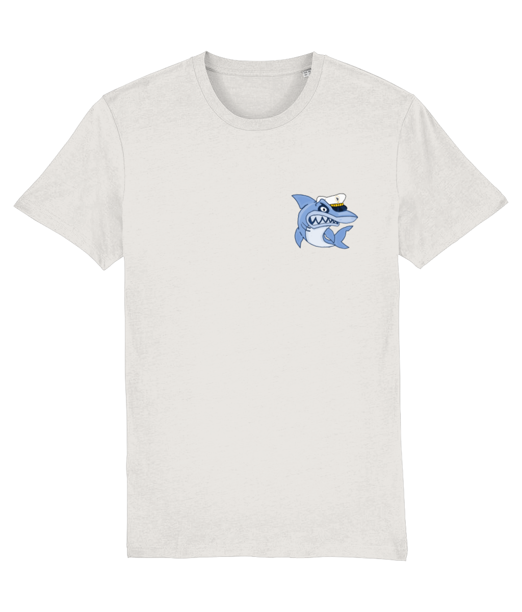 Shark in Skipper Hat Logo T-Shirt – 100% organic, available in 4 colours from XX-Small to 3XL