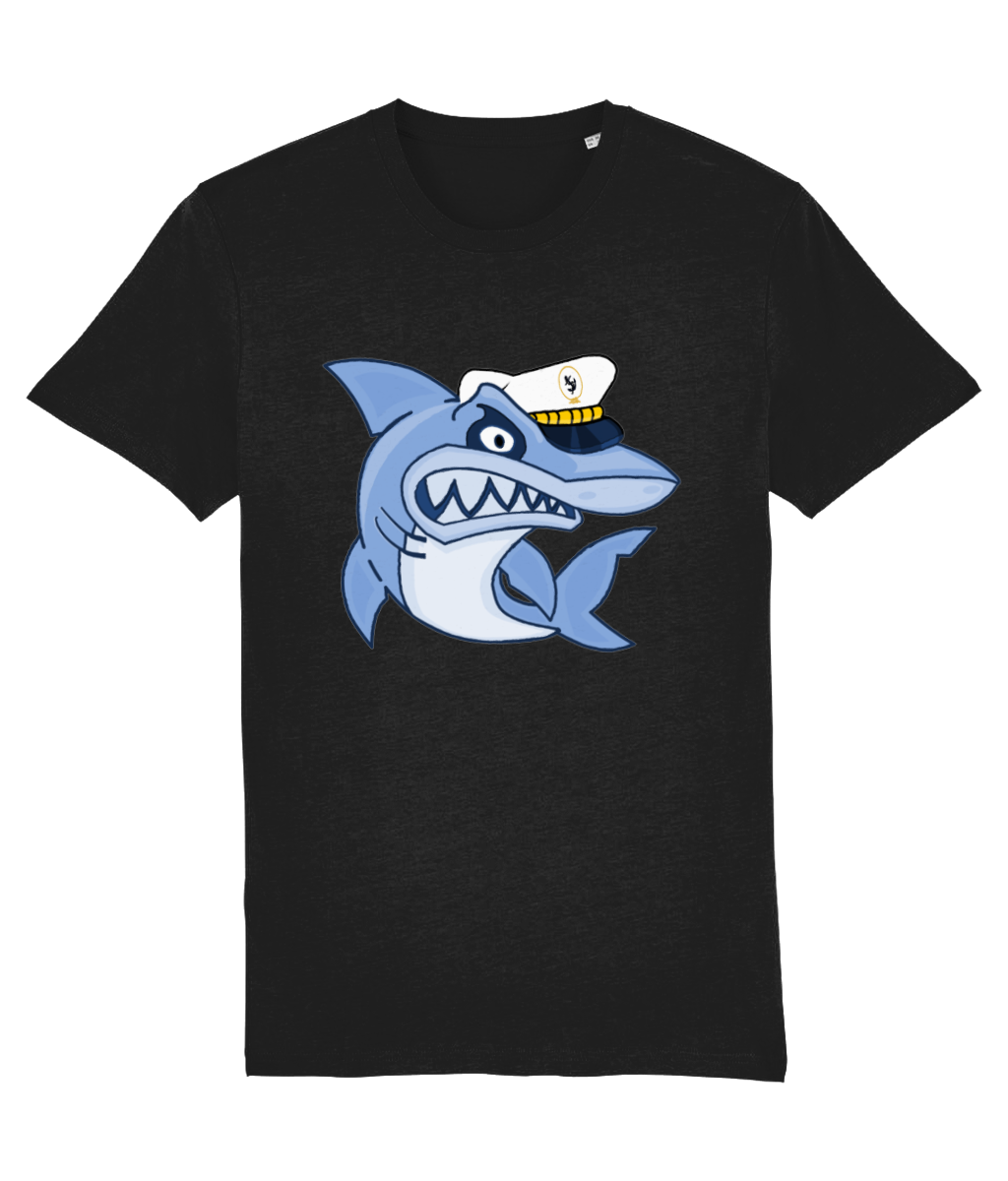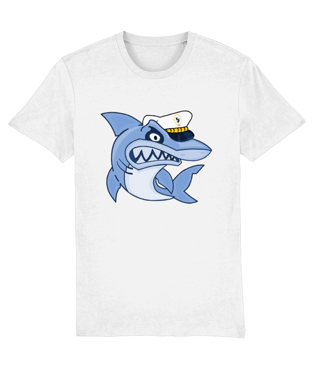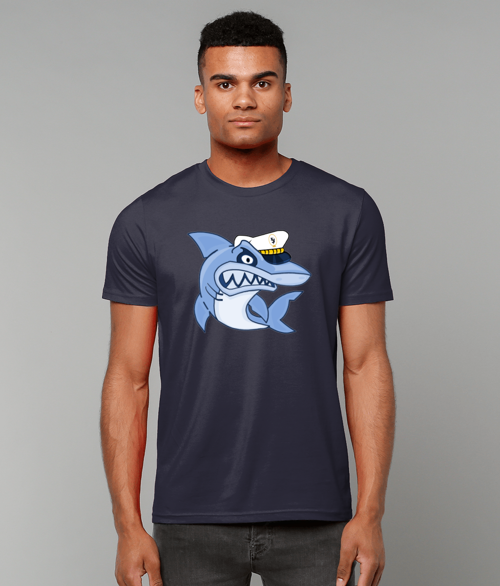 Shark in Skipper Hat T-Shirt – 100% organic, available in 4 colours from XX-Small to 3XL
