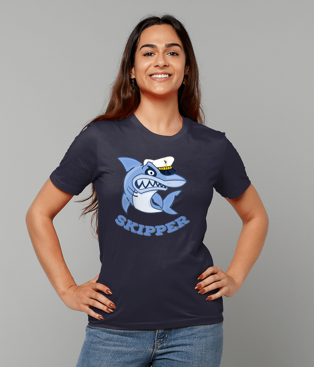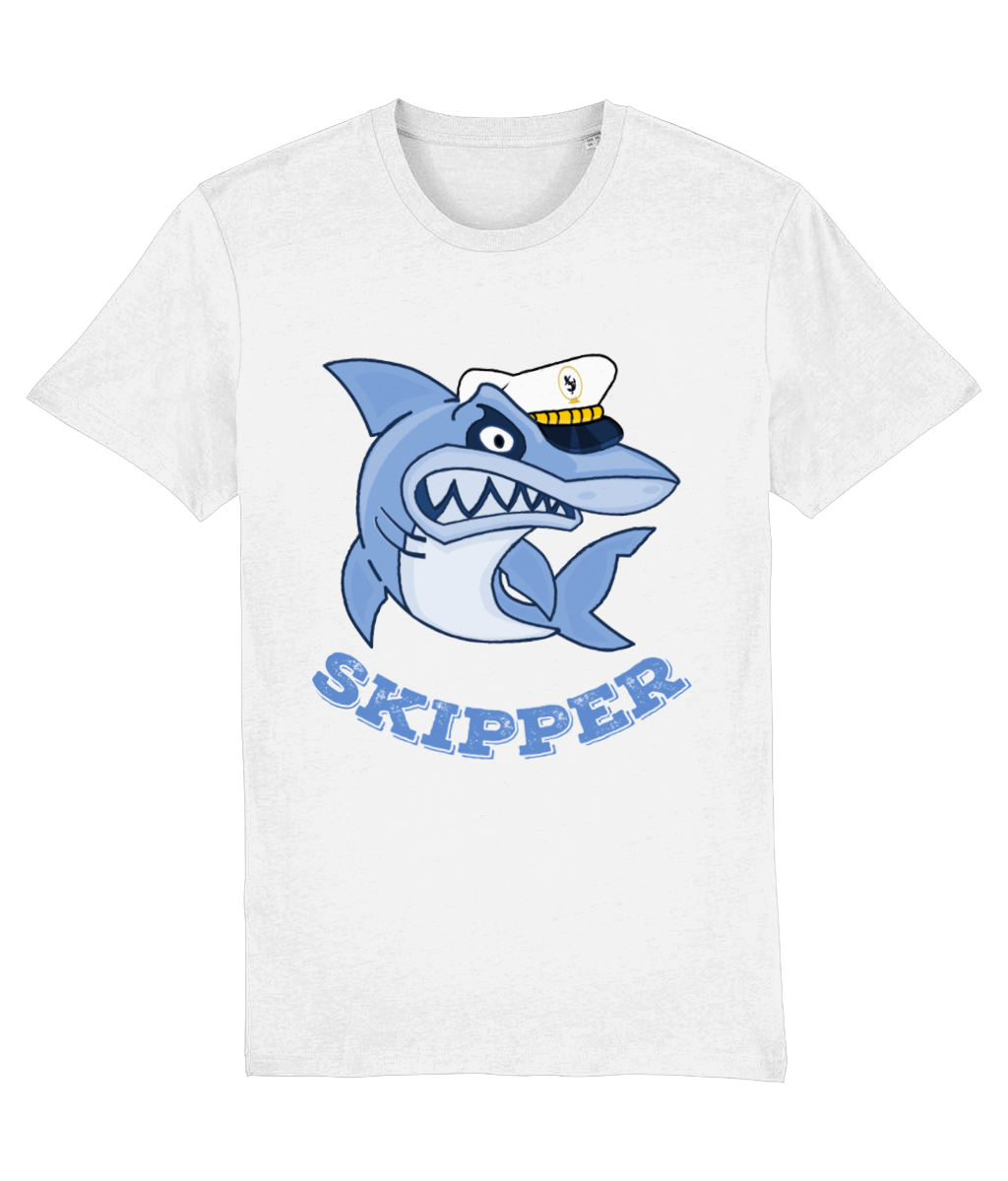 Shark Skipper T-Shirt – 100% organic, available in 4 colours from XX-Small to 3XL