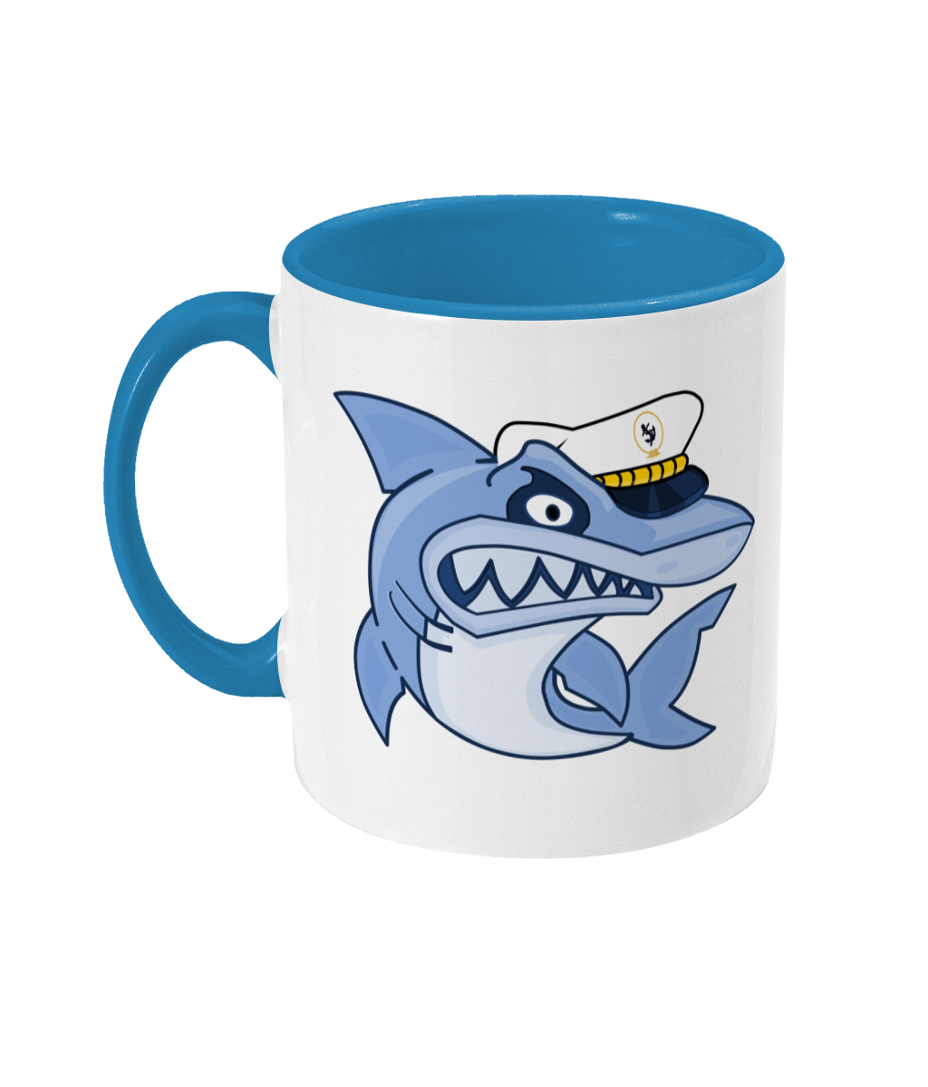 Shark Skipper Two Toned Mug – 11oz glossy white ceramic mug with coloured handle and inner. Dishwasher & Microwave safe. Available in 2 colours.