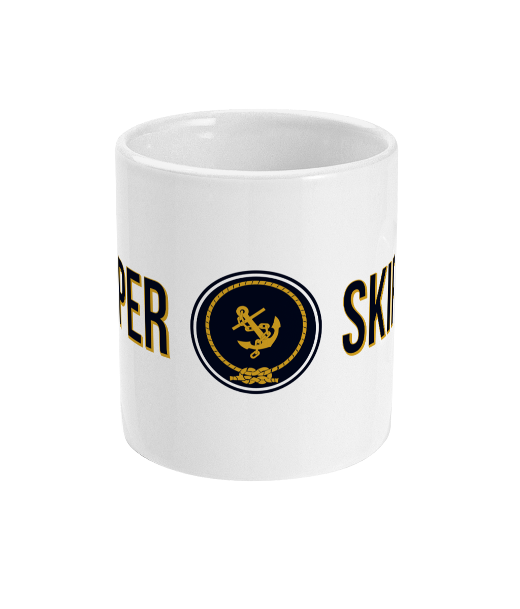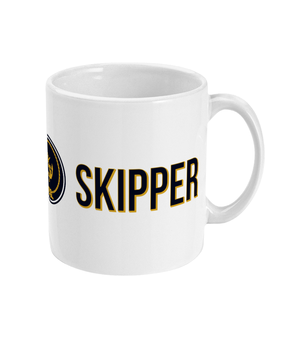 Skipper & Anchor Logo 11oz glossy white ceramic mug. Dishwasher & Microwave safe.