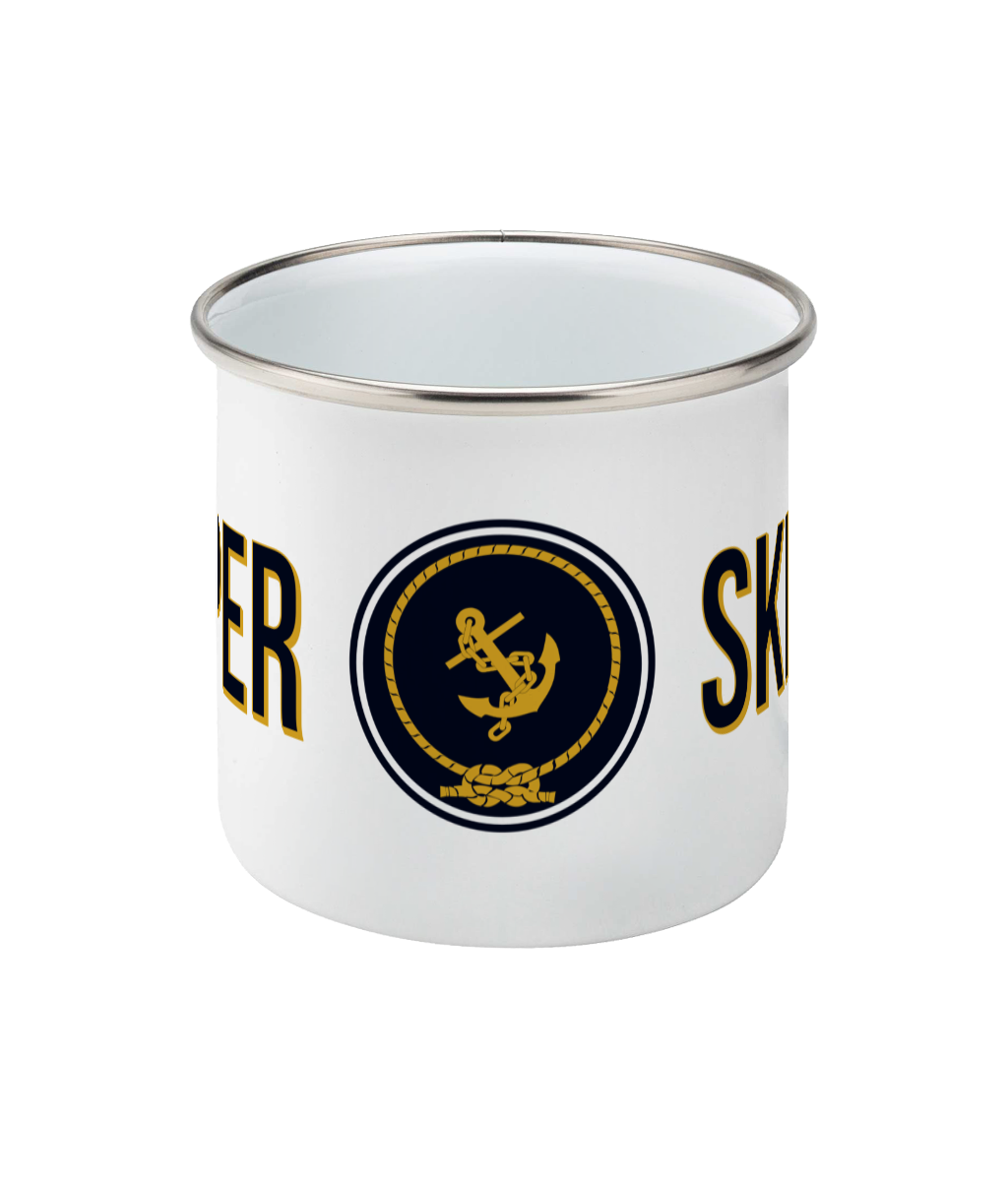 Skipper & Anchor Logo Enamel Mug – 11oz enamel mug, hand enamelled for a unique finish. Not suitable for dishwasher or microwave.