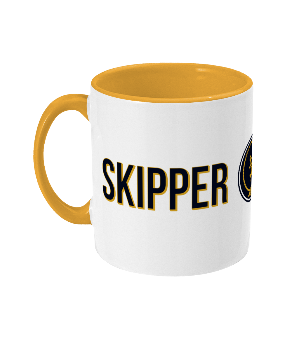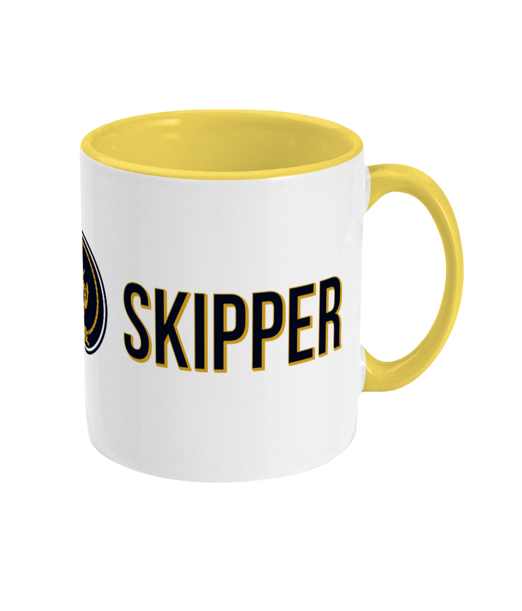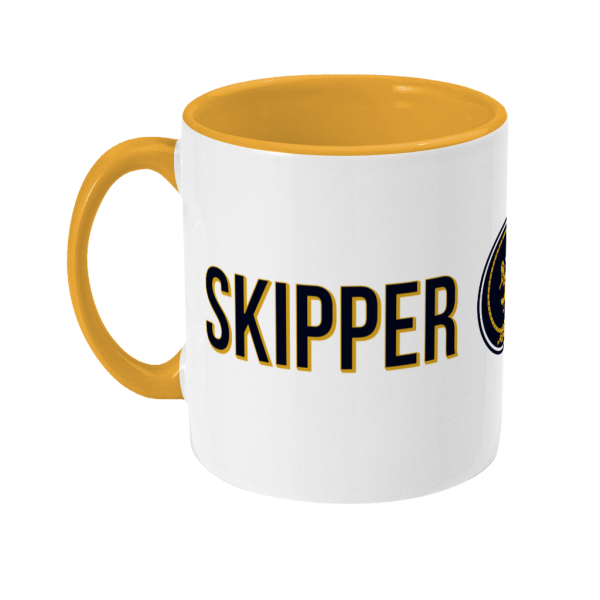 Skipper & Anchor Logo Two Toned Mug – 11oz glossy white ceramic mug with coloured handle and inner. Dishwasher & Microwave safe. Available in 2 colours.