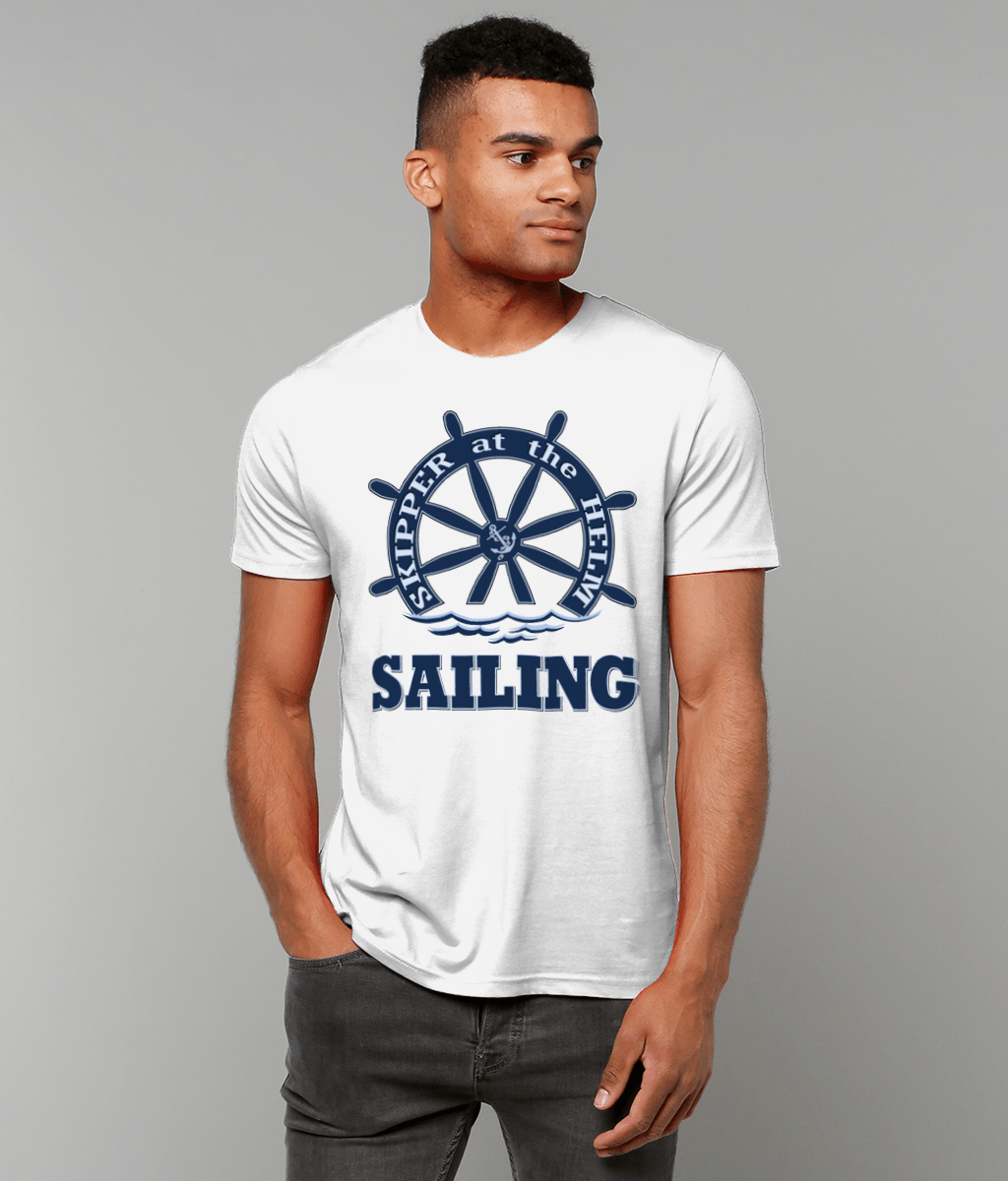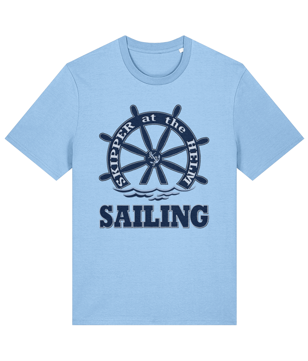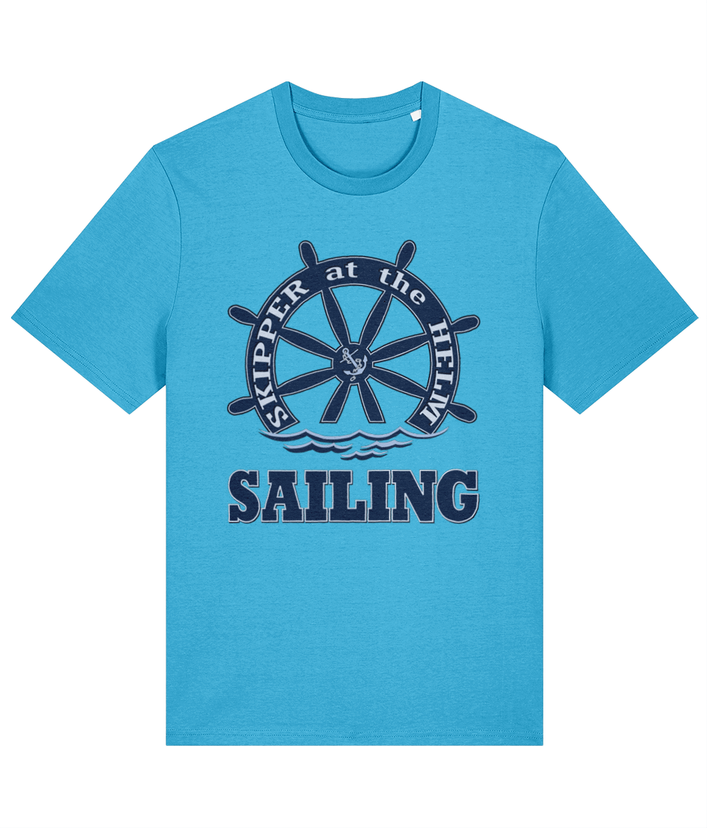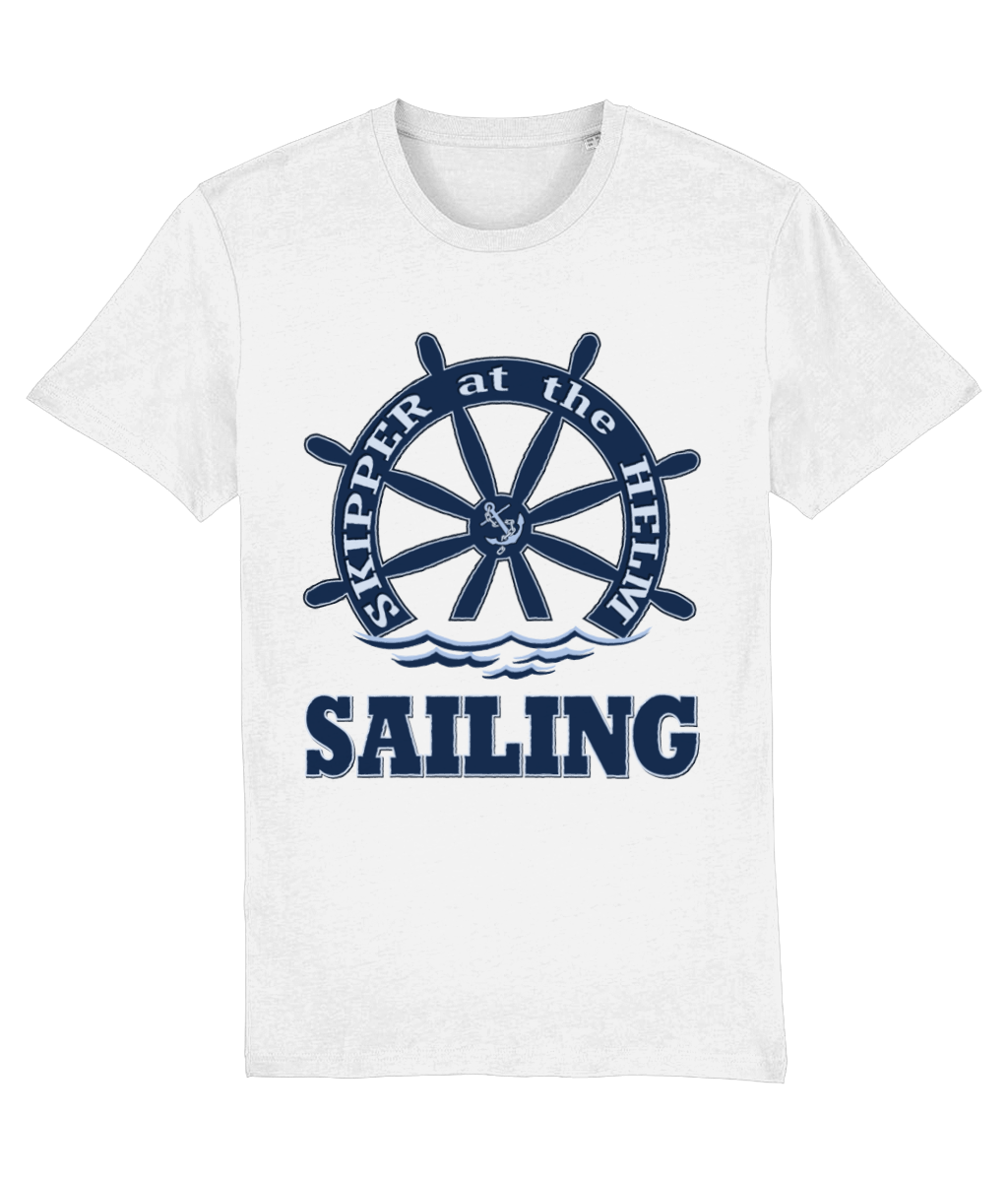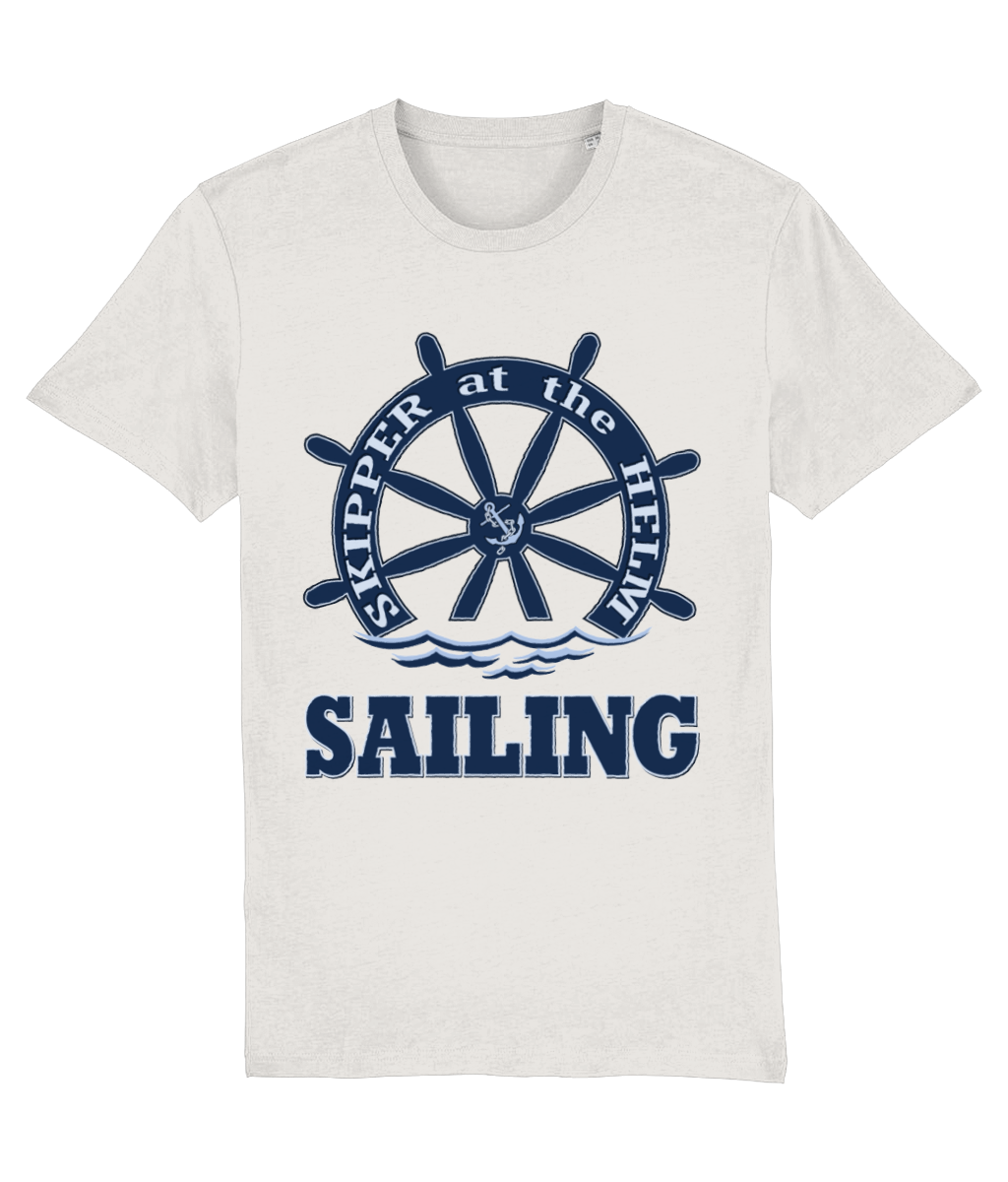 Skipper at the Helm Sailing T-Shirt – 100% organic, available in 5 colours from XX-Small to 3XL
