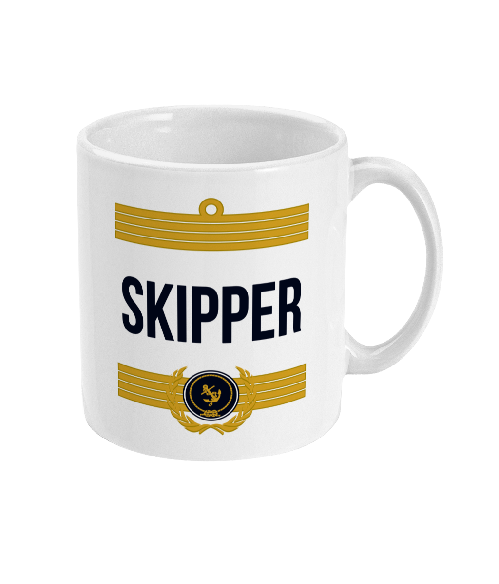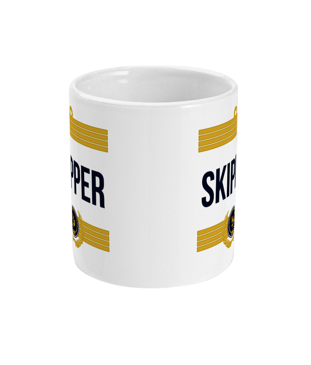 Skipper Stripes 11oz glossy white ceramic mug. Dishwasher & Microwave safe.